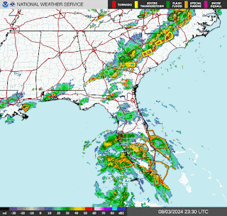 Of course the heavy rains (and possible flooding issues, storm surge) will be along and East of the hurricane or tropical storm now called Debby. So let's look at that before we wrap up.